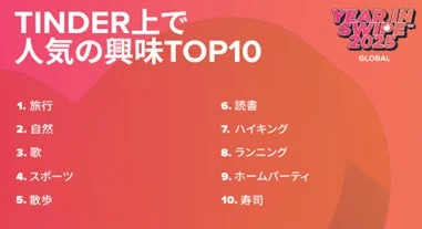 グローバルで見ると、「旅行」「自然」「スポーツ」といった活動的な興味や、「読書」「歌」といった趣味が上位にランクインしています。驚くことに「寿司」が10位に入っているのは、日本発のカルチャーが世界中で愛されている証拠ですよね。